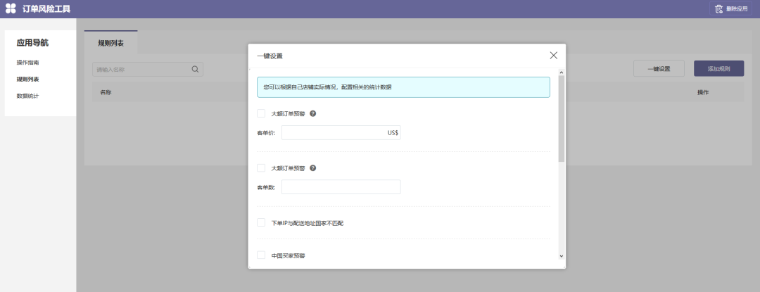 以上情况,商家可通过安装应用插件《订单风险工具》来避免,安装后,SHOPYY系统将根据预先设定的条件,自动进行订单风险判断。