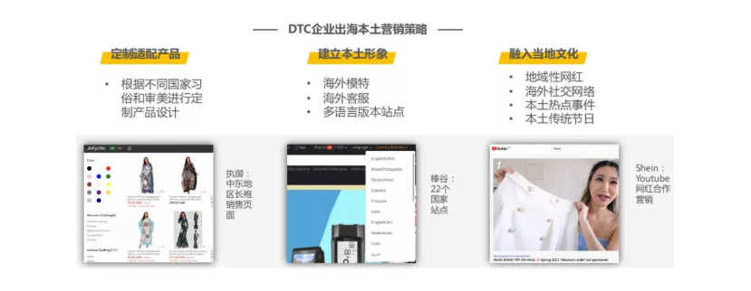 DTC企业出海改变了以往粗放式的外贸产品经营策略,而是以自主品牌形象直接面对海外消费者负责,本地化营销因此成为其最主要的营销策略,本土化营销能力成为影响企业生存发展的重要因素。
